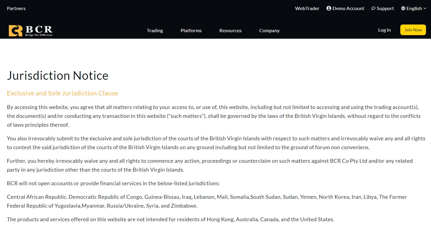 กล่าวอีกนัยหนึ่งบัญชีของลูกค้าที่ไม่ใช่ชาวออสเตรเลียจะเปิดภายใต้นิติบุคคลที่ได้รับอนุญาตจาก BVI FSC BCR Co Pty Ltd. อย่างไรก็ตามใบอนุญาต BVI FSC นอกชายฝั่งมีประสิทธิภาพในการกํากับดูแลต่ําซึ่งส่งสัญญาณที่น่าหนักใจเกี่ยวกับความปลอดภัยของเงินทุนของนักลงทุน