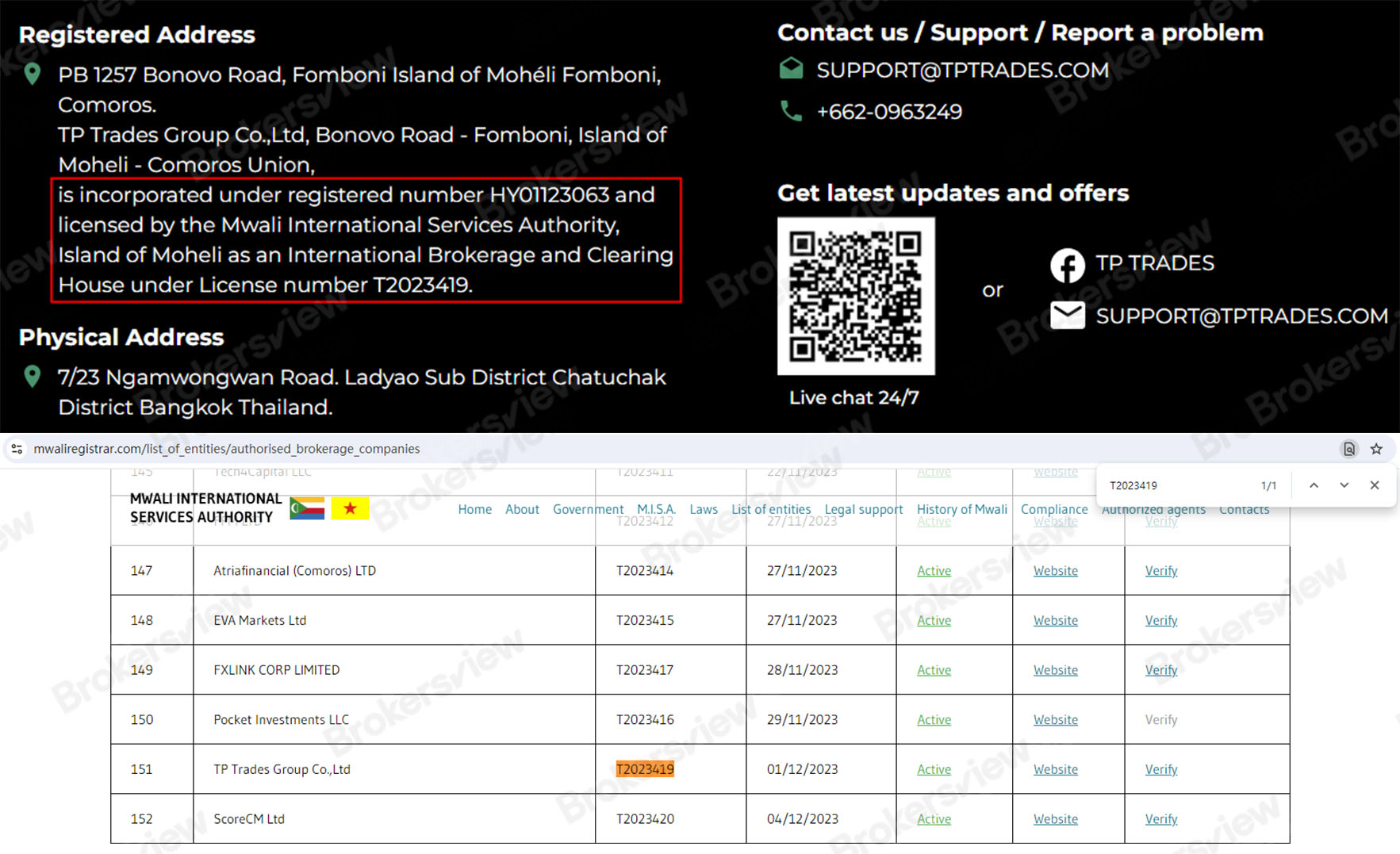 TP TRADES เป็นโบรกเกอร์ฟอเร็กซ์ที่ไม่ได้รับการควบคุม แม้ว่า TP TRADES จะวางตำแหน่งตัวเองเป็นองค์กรการซื้อขายออนไลน์ที่มีประสบการณ์ แต่ก็ไม่อยู่ภายใต้กฎระเบียบที่มีประสิทธิภาพและแข็งแกร่ง – เป็นคำเตือนที่ชัดเจนสำหรับนักลงทุนที่มีศักยภาพ TP TRADES ได้เปิดเผยหมายเลขใบอนุญาตภายใต้ Moheli International Services Authority (MISA)