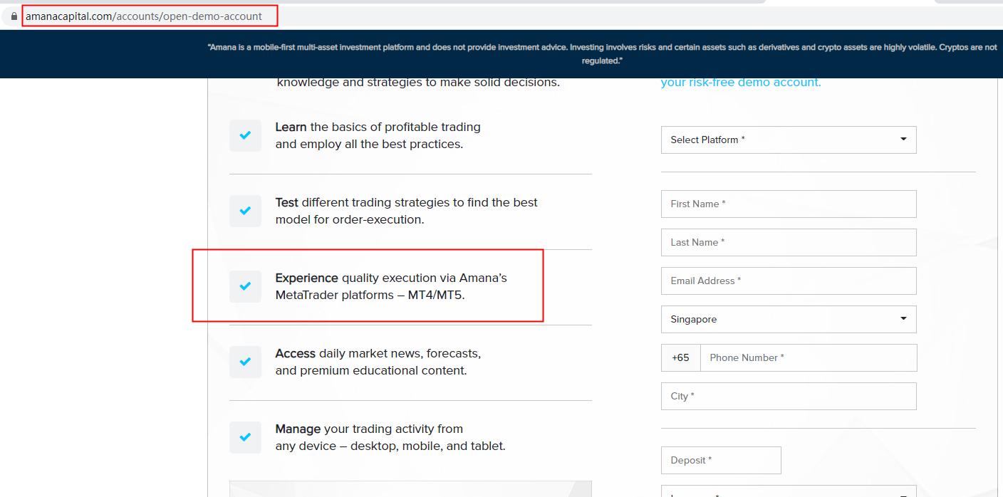 As for the question you asked, you can choose use MT4 or MT5 when you open a demo account in Amana Capital. For more details on this broker, please check our full Amana Capital review.