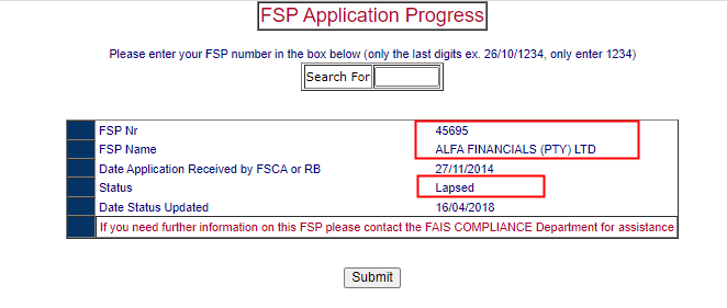 Alfa Financials is not regulated by any financial authorities and should be avoided at all events. Alfa Financials claims to be the trading name of Ala Financials (PTY) LTD which is regulated by the South African Financial Services Board (FSB License No. 45695). But the regulator that approves licenses for brokers in South Africa is the Financial Services Conduct Authority (FSCA) rather than FSB. We checked on FSCA and found the company is in its register. However, the regulatory status is abnormal and the official regulatory status is lapsed. So Alfa Financials is not regulated or overseen by any financial regulator. That means investors' funds in this broker are unsafe and cannot be protected by any laws. Therefore, it is a scam.