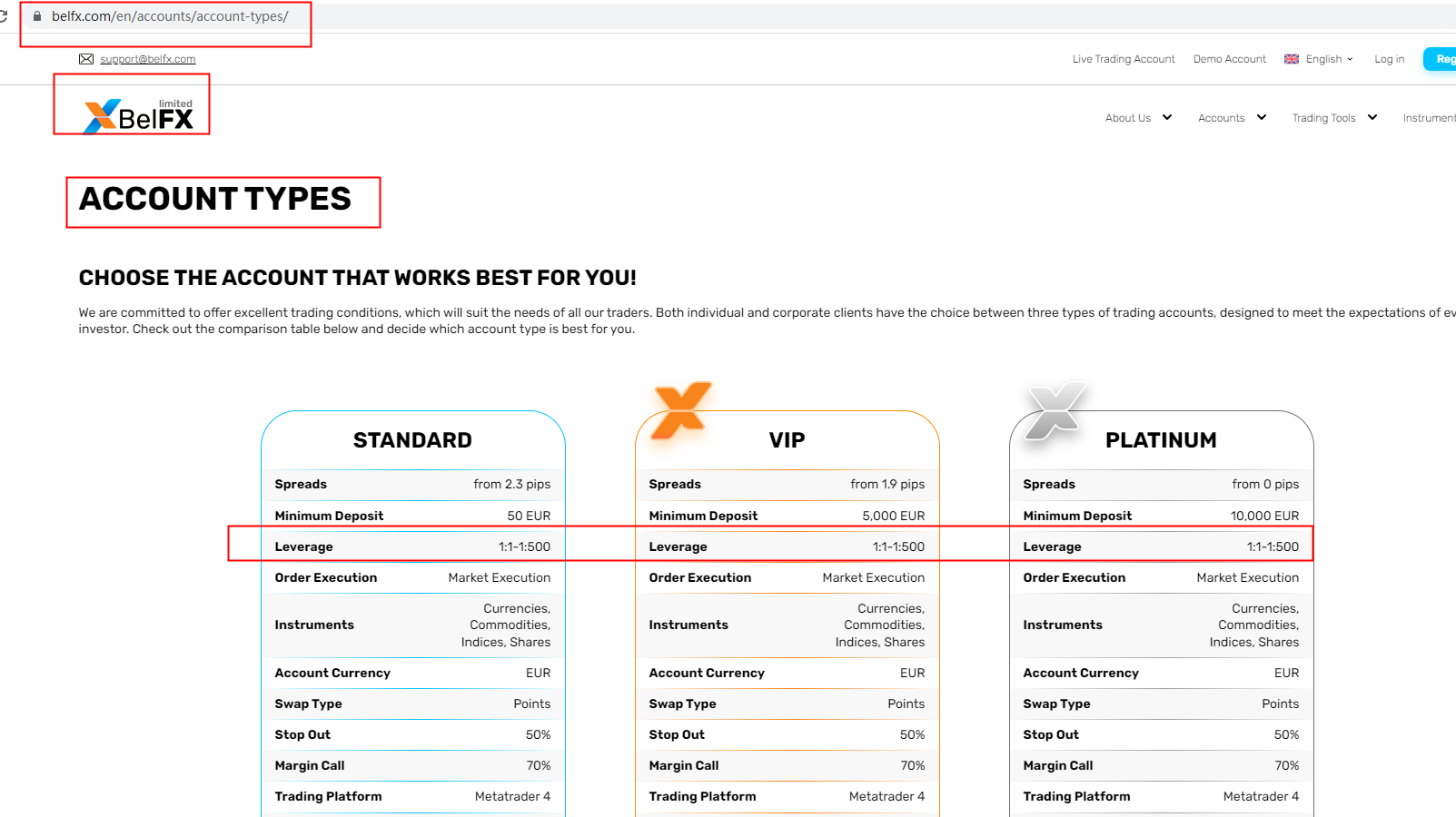 It appears that the highest leverage offered by BelFx is 1:500, according to the details in its "Account Types" on their website. To achieve the most accurate answer, however, we recommend that you ask the official customer services directly. For more information about this broker, you can check our full BelFx review.