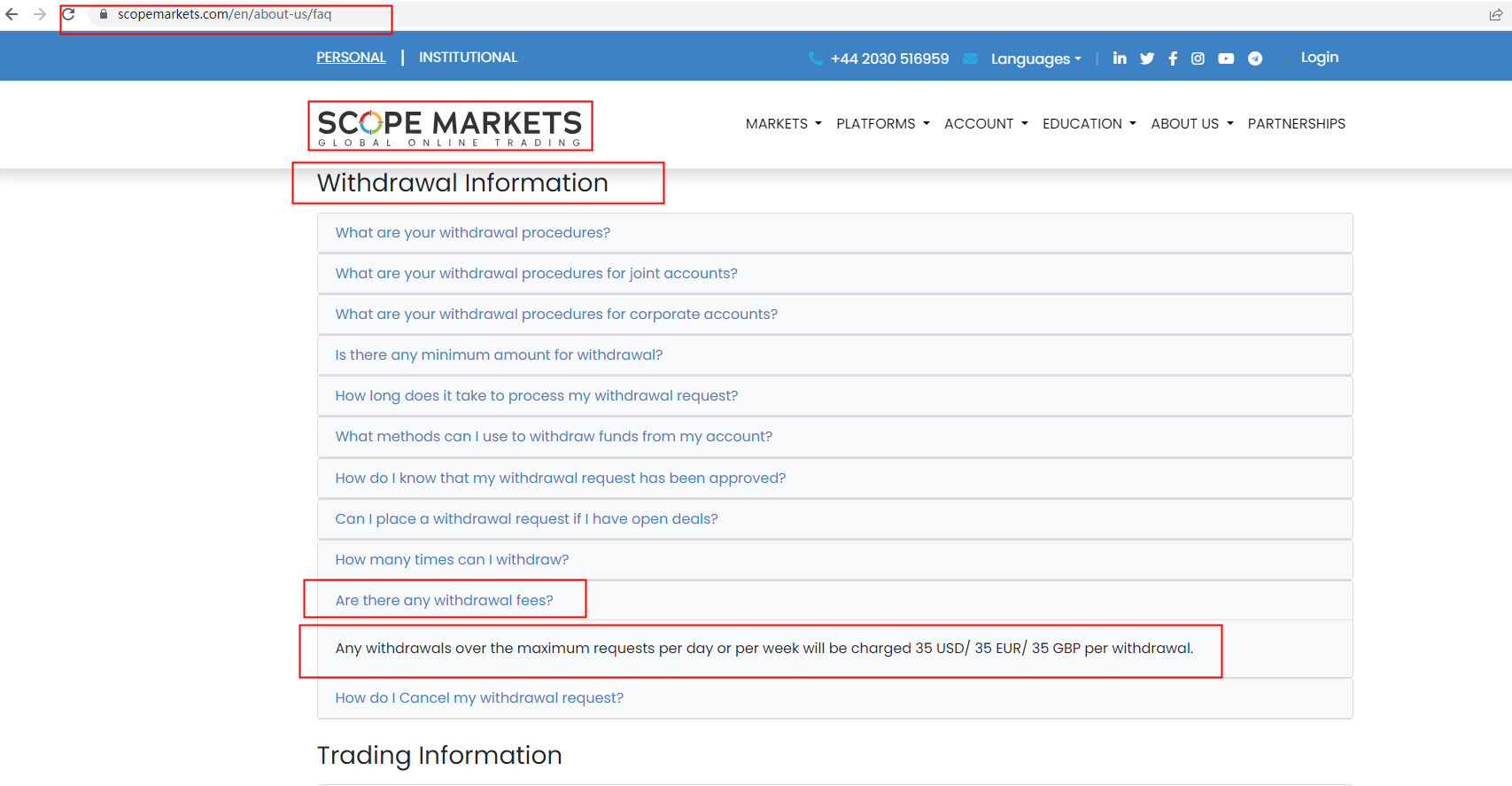 Scope Markets charges fees for withdrawal and we found relevant information in the FAQ section. In order to achieve the most accurate and current answer, we recommend that you ask the official customer services directly. For more details on this broker, please check our full Scope Markets review.