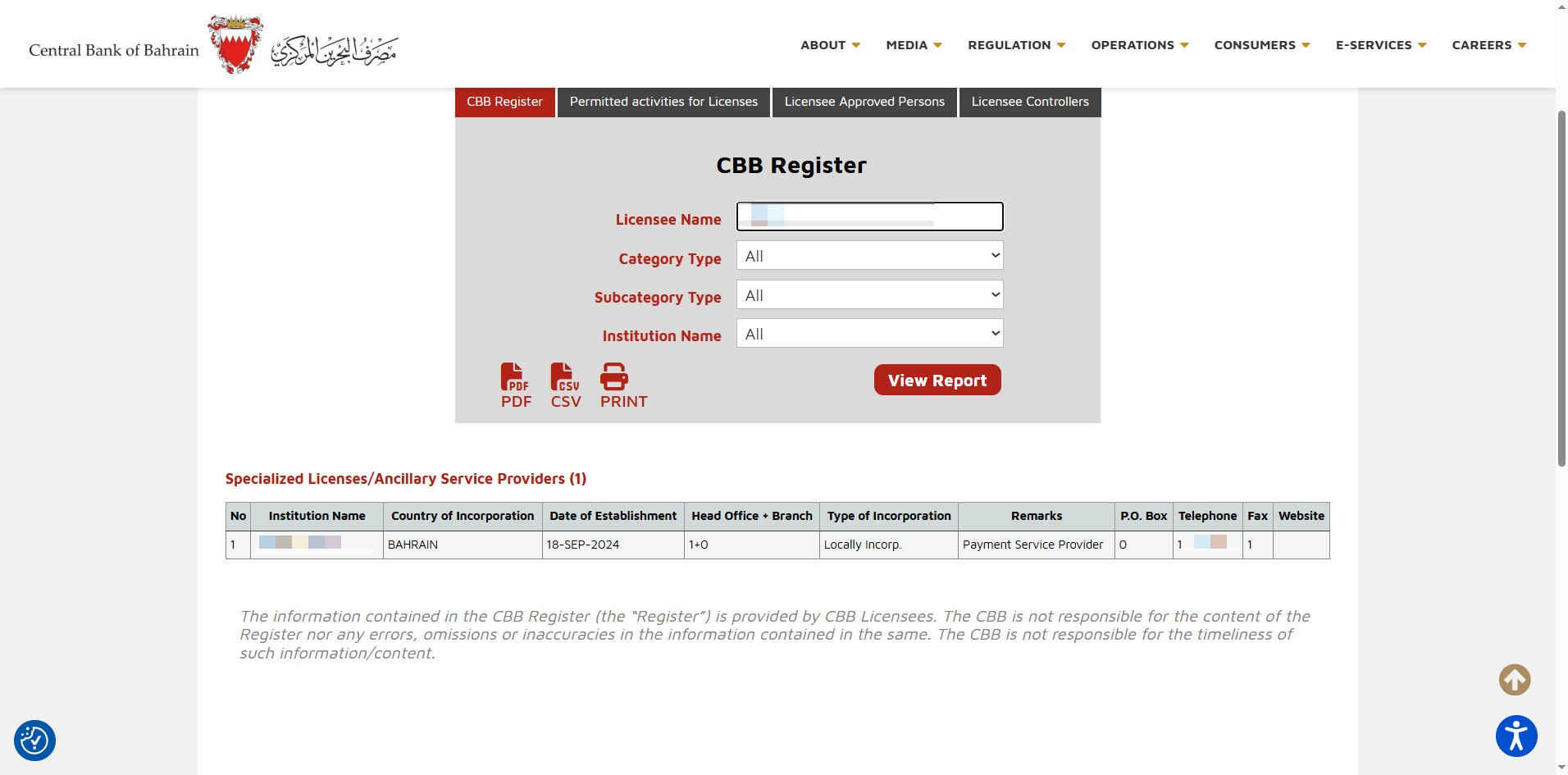 (ค) ได้รับอนุญาตเป็นลายลักษณ์อักษรอย่างชัดแจ้งจากธนาคารกลางบาห์เรน (CBB) เพื่อเสนอบริการทางการเงิน