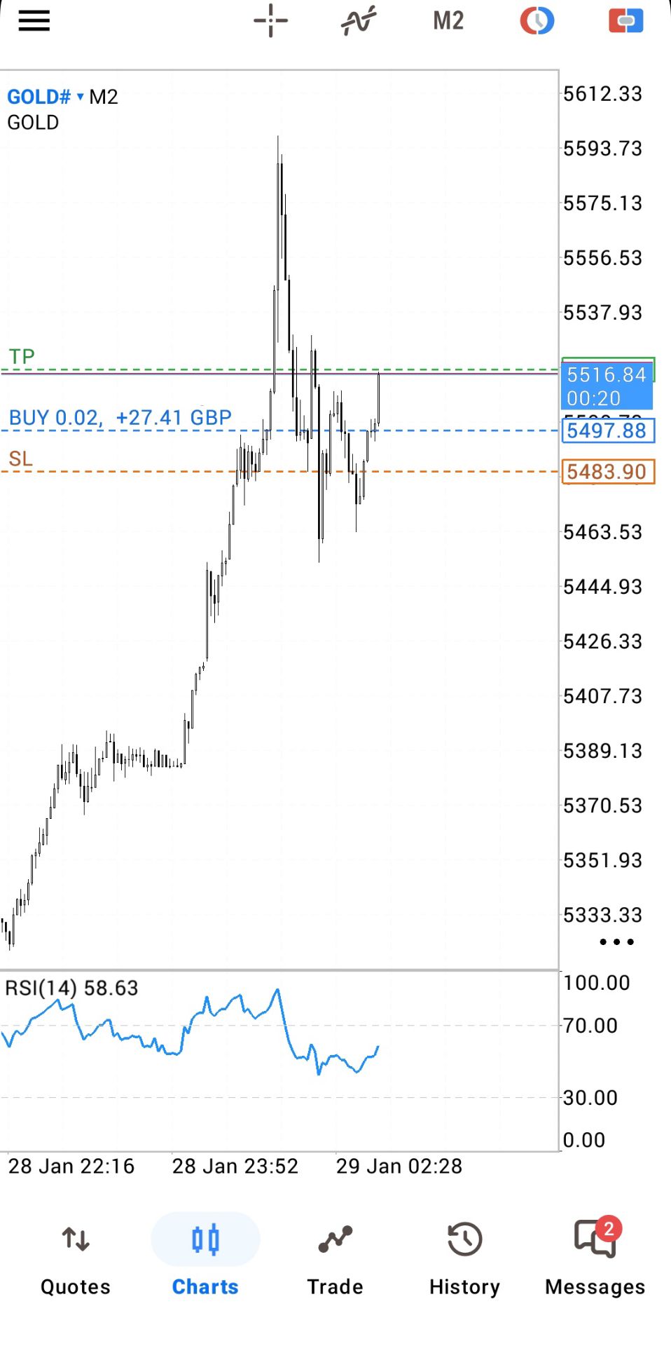 ราคาทองคำสปอตปรับตัวลงอย่างรวดเร็วหลังจากพุ่งขึ้นไปเกือบถึง 5,600 ดอลลาร์ และปัจจุบันซื้อขายอยู่ที่ 5,530 ดอลลาร์ต่อออนซ์ โดยกำไรรายวันลดลงเหลือเพียง 2%