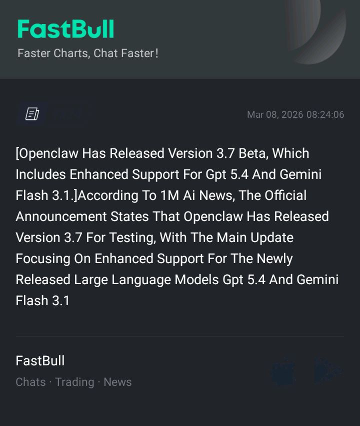 [Openclaw ได้ปล่อยเวอร์ชัน 3.7 เบต้าแล้ว ซึ่งมีการปรับปรุงการสนับสนุนสำหรับ GPT 5.4 และ Gemini Flash 3.1] ตามรายงานของ 1M Ai News ประกาศอย่างเป็นทางการระบุว่า Openclaw ได้ปล่อยเวอร์ชัน 3.7 สำหรับการทดสอบ โดยการอัปเดตหลักมุ่งเน้นไปที่การปรับปรุงการสนับสนุนสำหรับโมเดลภาษาขนาดใหญ่ GPT 5.4 และ Gemini Flash 3.1 ที่เพิ่งเปิดตัวใหม่