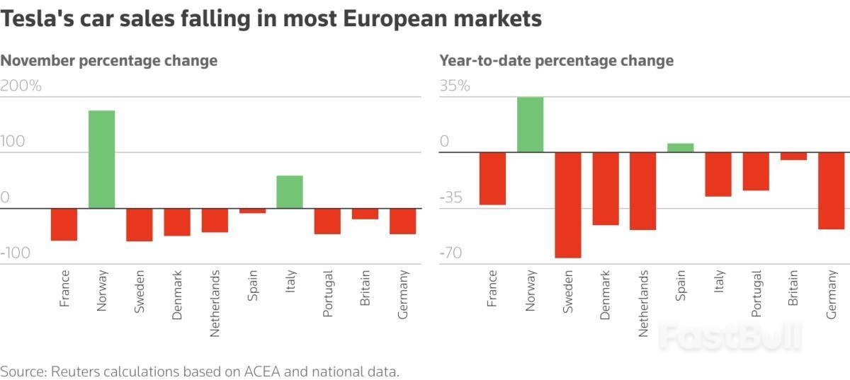 การลดลงของการจดทะเบียนแบรนด์ในเดือนพฤศจิกายนสอดคล้องกับการลดลง 20% ในเยอรมนี และการลดลงเกือบ 60% ในฝรั่งเศสและตลาดอื่นๆ ในยุโรป ซึ่งถูกชดเชยเพียงบางส่วนจากยอดขายที่ทำลายสถิติในนอร์เวย์เท่านั้น