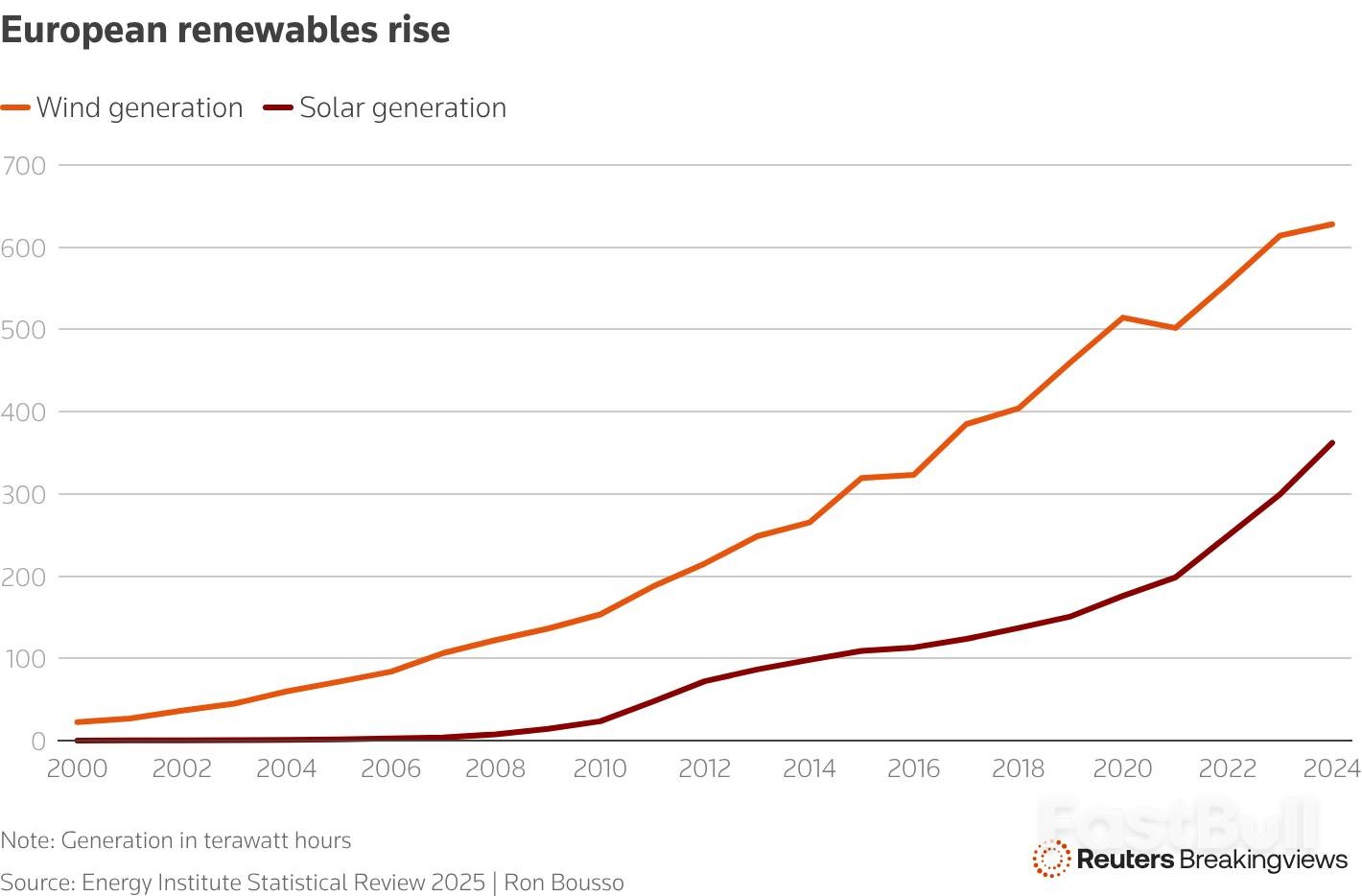 ยุโรปอาจได้รับประโยชน์ทางอ้อมจากท่าทีของประธานาธิบดีทรัมป์เกี่ยวกับพลังงานลมเช่นกัน ภาคพลังงานลมในทะเลของสหรัฐฯ ประสบกับภาวะตกต่ำอย่างมาก โดยสำนักงานพลังงานระหว่างประเทศได้ปรับลดการคาดการณ์สำหรับปี 2030 ของประเทศลงกว่า 50% ความต้องการเรือ อุปกรณ์ และบริการที่ลดลงในอเมริกาอาจนำไปสู่ราคาที่ต่ำลงสำหรับผู้ประกอบการในยุโรป