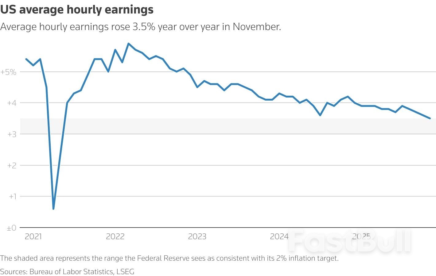ค่าจ้างเฉลี่ยต่อชั่วโมงเพิ่มขึ้น 3.5% ในช่วง 12 เดือนจนถึงเดือนพฤศจิกายน หลังจากเพิ่มขึ้น 3.7% ในเดือนตุลาคม การชะลอตัวของการเติบโตของงานกำลังชะลอการเติบโตของค่าจ้างและช่วยต่อสู้กับภาวะเงินเฟ้อ แต่ก็อาจเป็นอุปสรรคต่อการใช้จ่ายของผู้บริโภค ซึ่งเป็นเครื่องยนต์หลักของเศรษฐกิจ