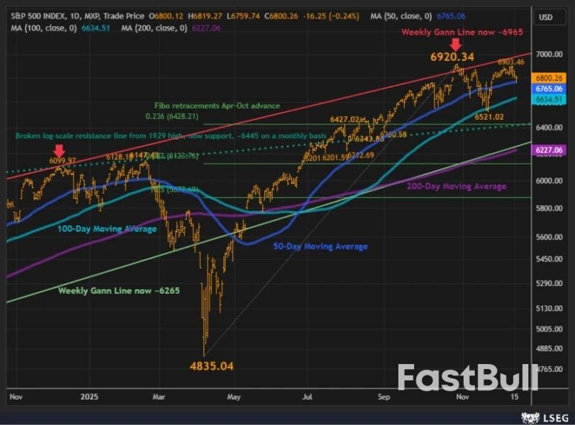 เมื่อวันอังคารที่ผ่านมา ดัชนี SPX ได้ทดสอบค่าเฉลี่ยเคลื่อนที่ระยะกลางที่ระดับ 6,765 ซึ่งเป็นตัวชี้วัดที่ได้รับความสนใจอย่างใกล้ชิด โดยแตะระดับต่ำสุดในช่วงบ่ายที่ 6,759.74 ก่อนที่จะฟื้นตัวและปิดตลาดที่ 6,800.26 ส่งผลให้ดัชนี SP 500 ปิดลดลง 1.46% จากระดับสูงสุดเป็นประวัติการณ์ที่ 6,901 เมื่อวันที่ 11 ธันวาคม และลดลง 1.74% จากระดับสูงสุดระหว่างวันเป็นประวัติการณ์ที่ 6,920.34 เมื่อวันที่ 29 ตุลาคม
