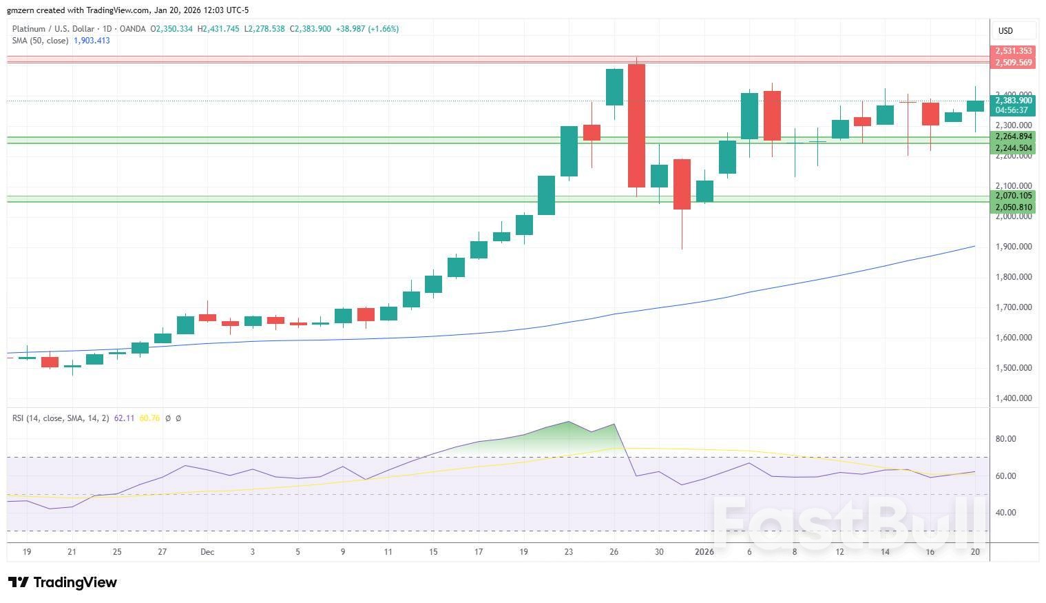 ชาร์ตรายวัน Platinum 200126ราคาแพลทินัมพยายามทรงตัวเหนือระดับ 2400 ดอลลาร์ ท่ามกลางความต้องการโลหะมีค่าที่เพิ่มสูงขึ้น