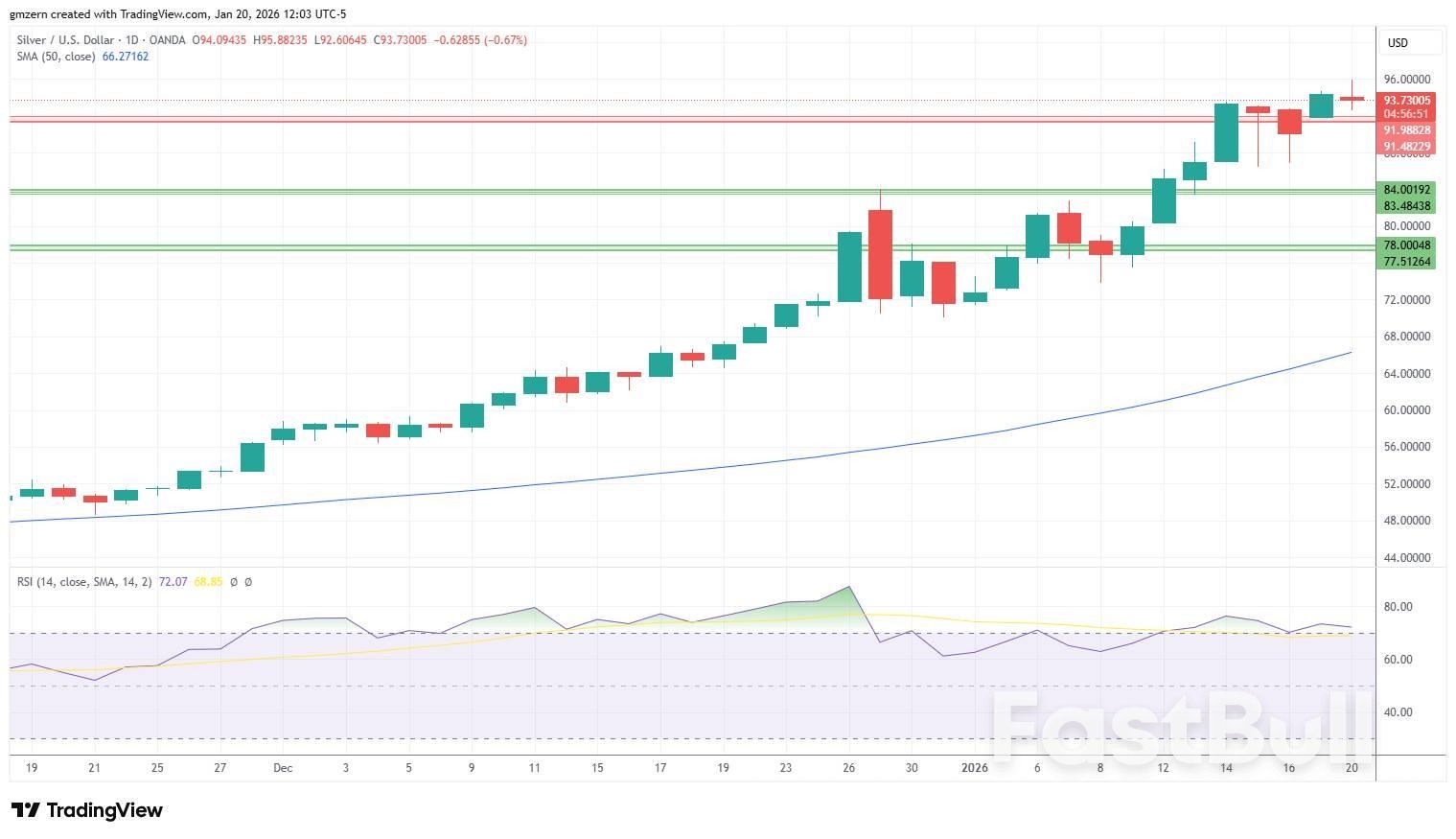 แผนภูมิรายวัน Silver 200126ราคาเงินปรับตัวลง ขณะที่อัตราส่วนทองคำต่อเงินกลับขึ้นมาเหนือระดับ 50.00 ซึ่งเป็นระดับสำคัญทางจิตวิทยา