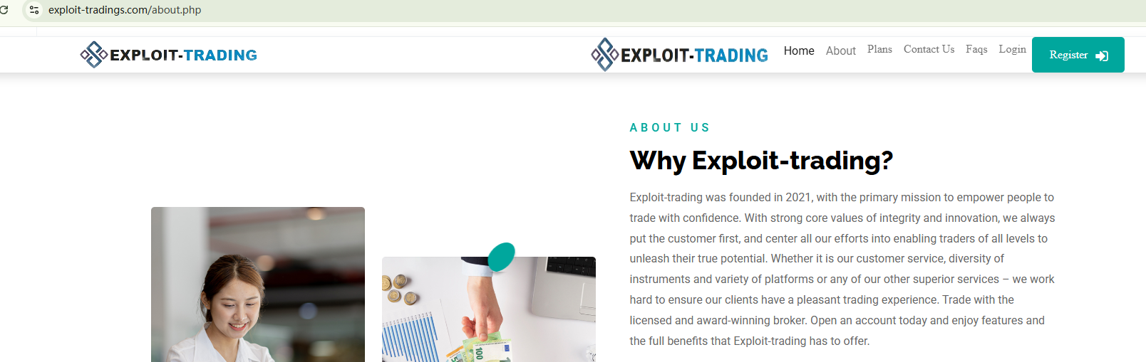 Exploit Trading 聲稱自己是一家提供各種資產(包括外匯)差價合約交易的經紀商。但是,該平臺未能提供可信的註冊或許可資訊來支援其受監管和可靠的聲明。