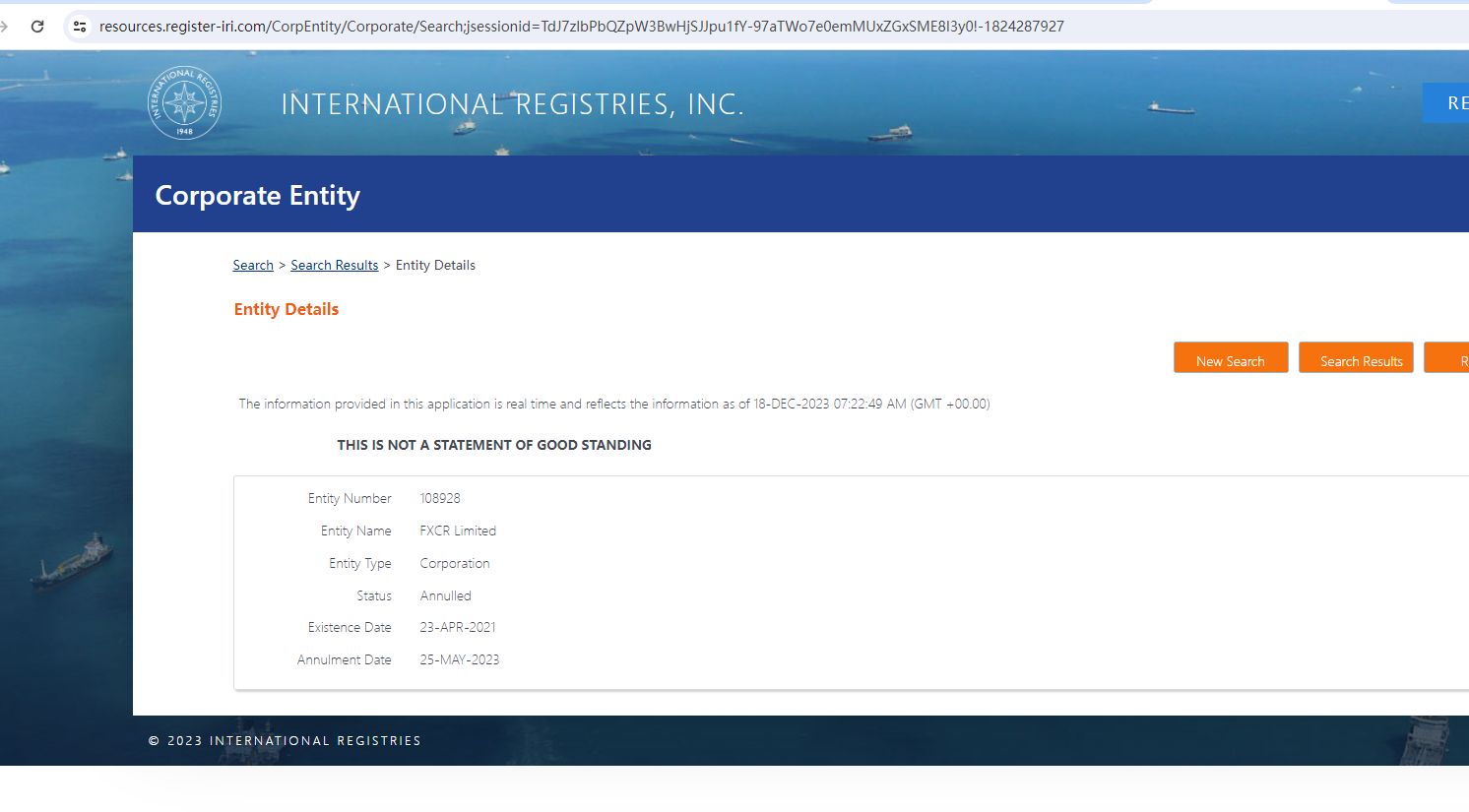該經紀商網站上沒有任何監管資訊。該經紀商位於馬紹爾群島。我們已在馬紹爾群島註冊處(IRI)進行搜索,找到匹配結果,但該記錄已被註銷。
