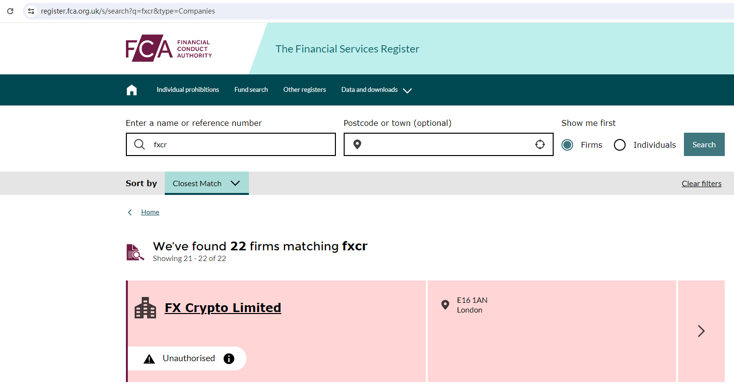 • 2023-12-17 BrokersView 已審核確認 FXCR 是一家不受監管的經紀商。