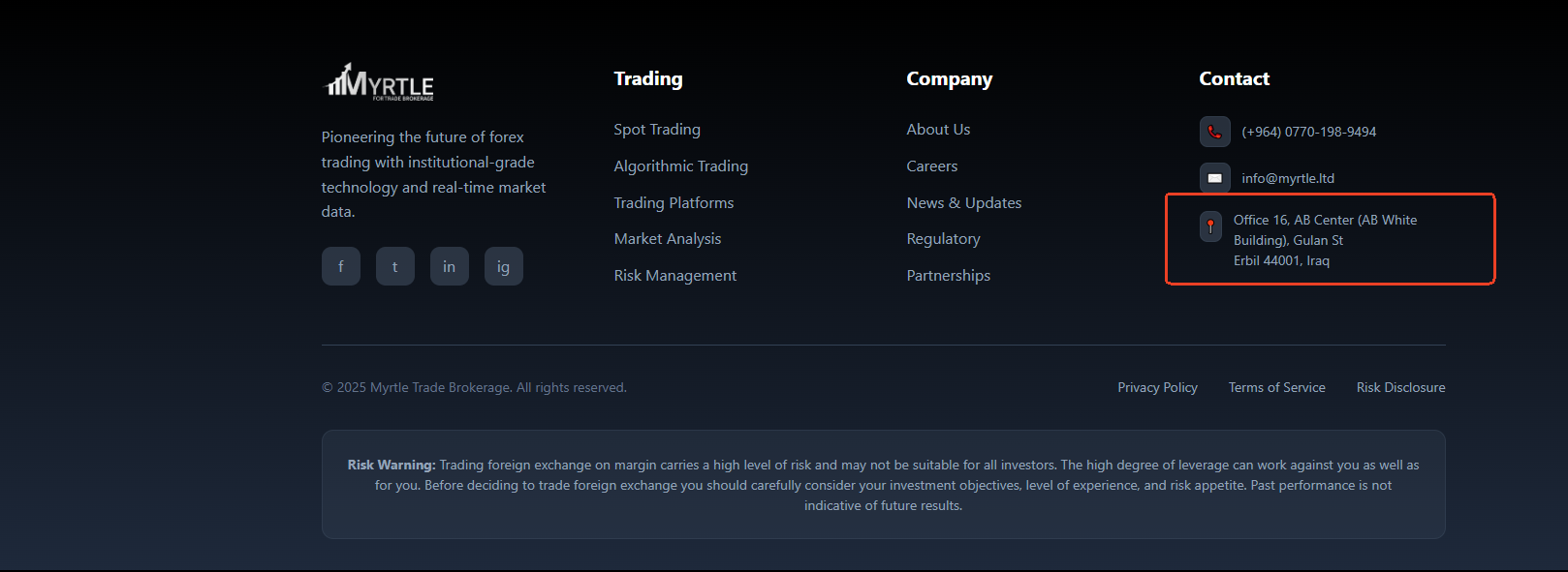 The company's website provides no verifiable regulatory disclosures, only listing an Iraqi phone number and registered address. However, to the best of our knowledge, there is currently no regulatory authority in Iraq overseeing forex trading activities. This means that forex trading in Iraq remains entirely unregulated, exposing investors to significant financial and legal risks.