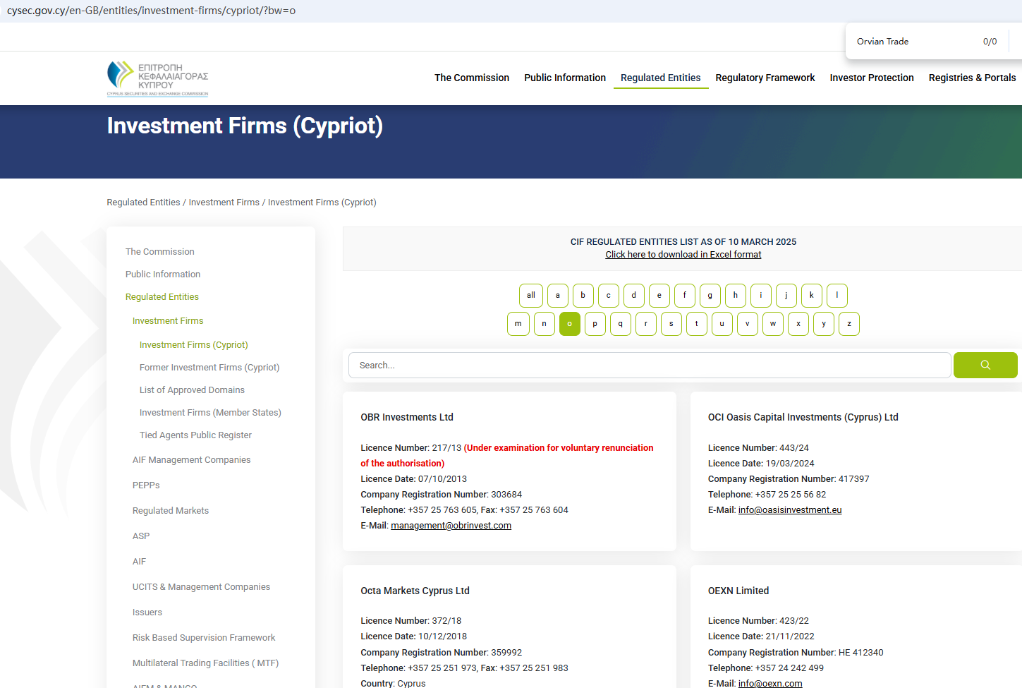 根據其網站訊息,該公司受英國金融行為監管局 (FCA) 和塞浦路斯證券交易委員會 (CySEC) 的雙重監管。然而,經查詢,並未發現與 CySEC 相符的資訊。此外,FCA 也發布了針對 Orvian Trade 的警告,懷疑該公司可能在未獲得必要授權的情況下提供金融服務或產品。