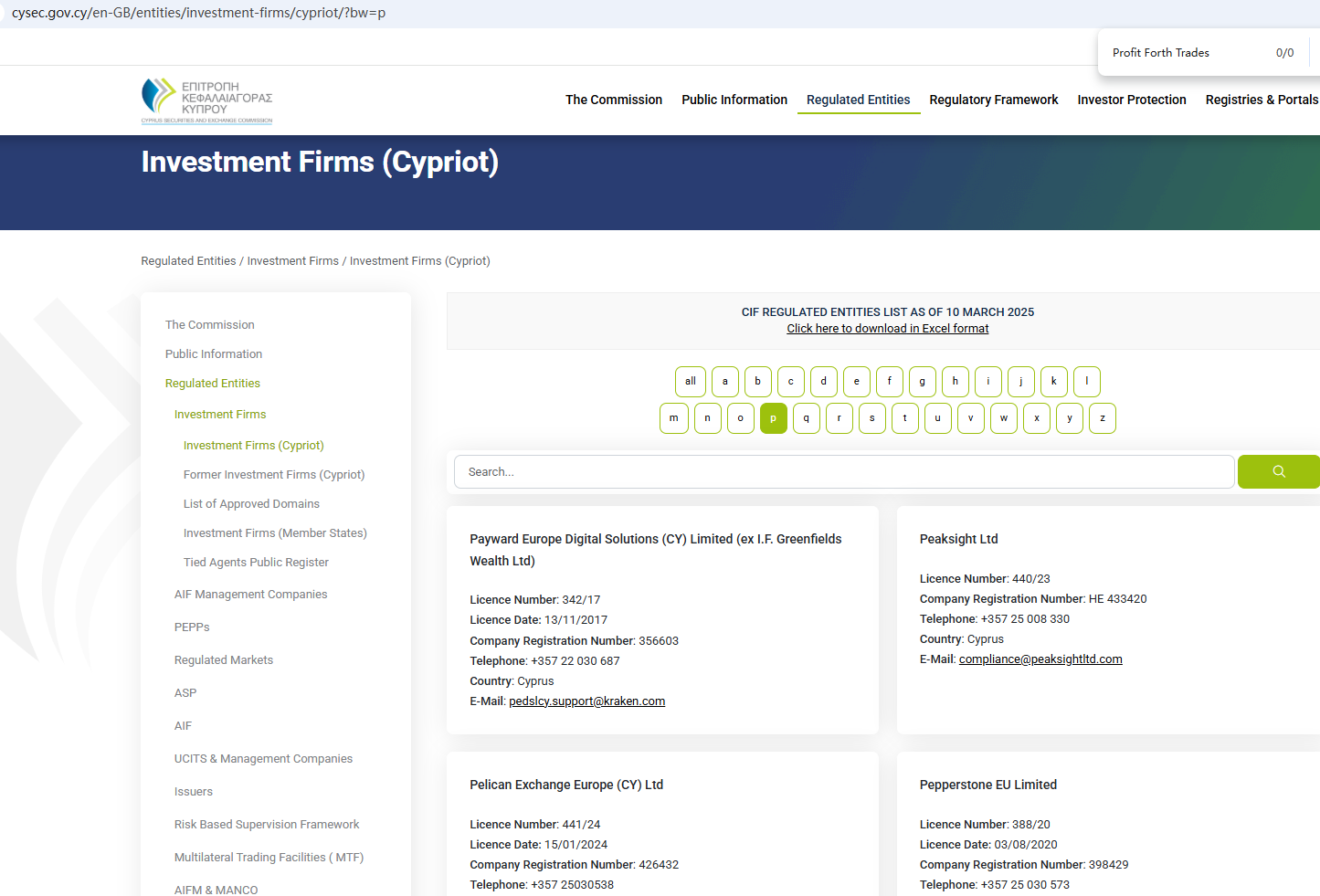 根據其網站訊息,該公司受英國金融行為監管局 (FCA) 和塞浦路斯證券交易委員會 (CySEC) 的雙重監管。然而,經查詢,並未發現與 CySEC 相符的資訊。此外,FCA 也對 Profit Forth Trades 發出警告,懷疑該公司可能在未獲得必要授權的情況下提供金融服務或產品。