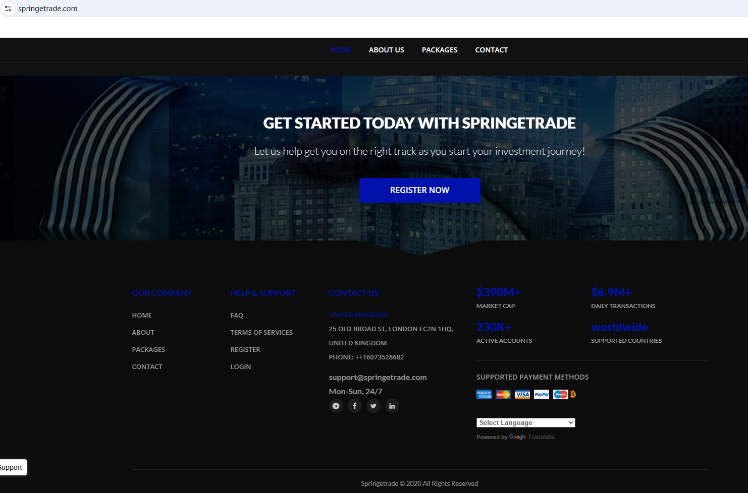 根據其網站信息,該公司位於英國。經調查,我們發現英國金融行為監理局(FCA)曾對Springetrade發出警告,懷疑該公司可能在未獲得必要授權的情況下提供金融服務或產品。事實上,Springetrade 不受任何機構監管。因此,Springetrade 是一個騙局。