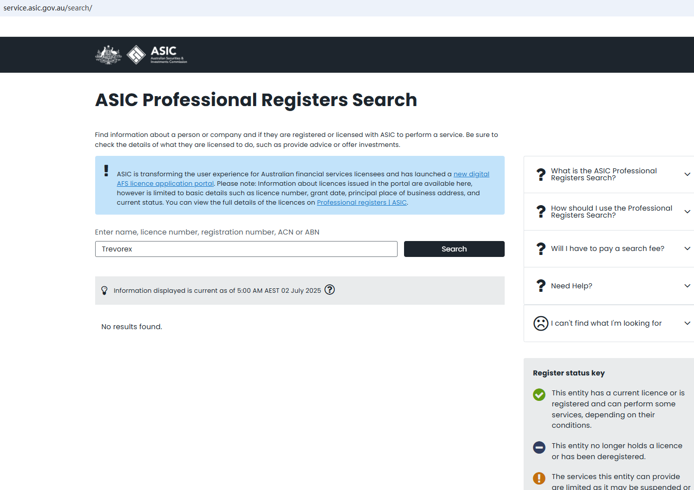 根據其網站,它在主頁上提到了澳大利亞證券與投資委員會(ASIC)。經調查,在 ASIC 中沒有發現匹配資訊。此外,沒有提供有效的監管細節供查詢,甚至沒有公佈辦公室的位址。這是不可靠的行為。建議投資者在識別和避免它時保持謹慎。 此外,義大利公司和交易委員會 (CONSOB) 已下令關閉 Trevirex 的網站,因為它非法提供金融服務。 從本質上講,Trevorex 不受任何管理機構的監管。將其委託給投資者的資金是高風險的,因為沒有法律保護措施來保護資金。Trevorex 似乎是一個騙局。