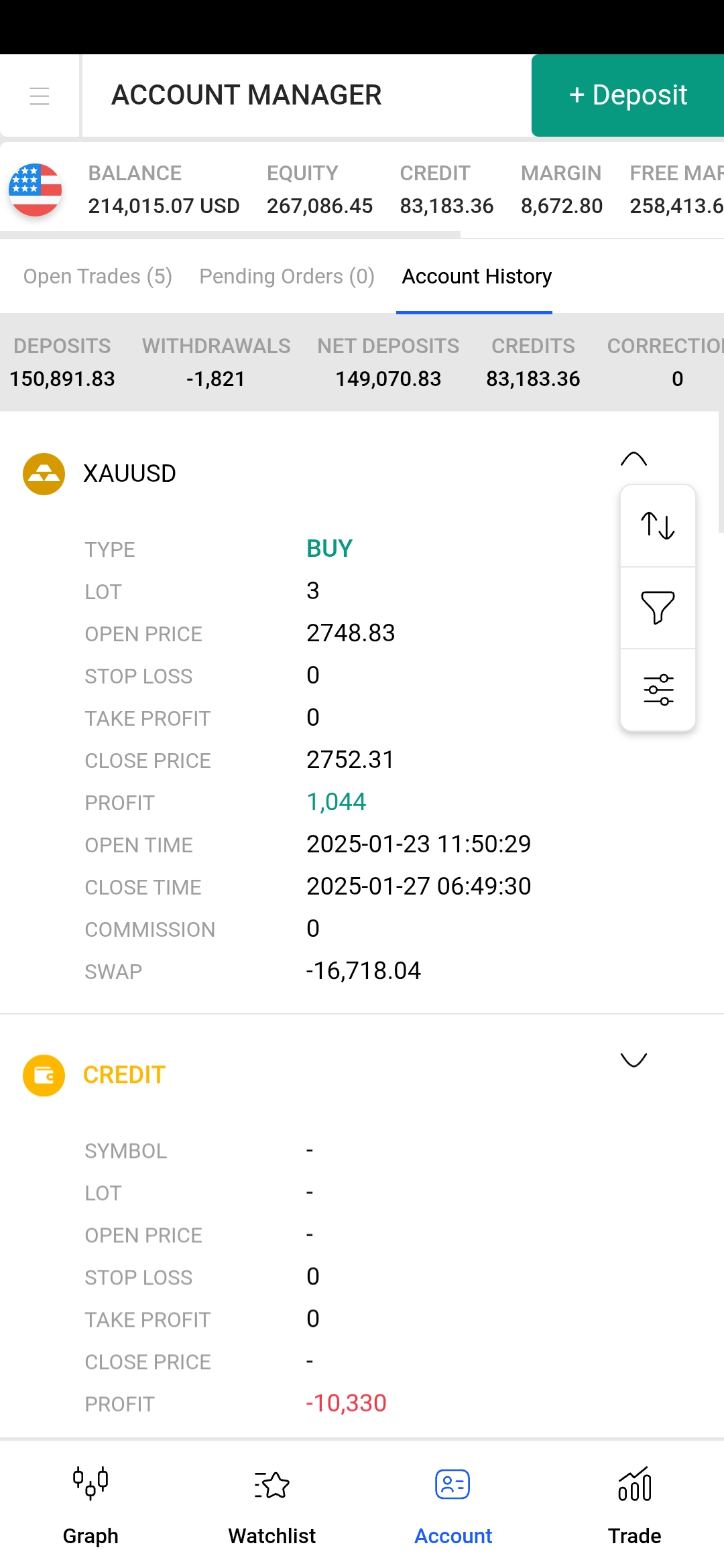 Notice the dates that I opened them and the dates that I closed them and the swap fee amounts. There was a weekend within these dates, and weekends are not included, so the gold asset was only open for 2 days. I even profited $1,044 on the gold asset but the swap fee absolutely drowned out that profit. Imagine if I had of left them open for 7 days, or more.
