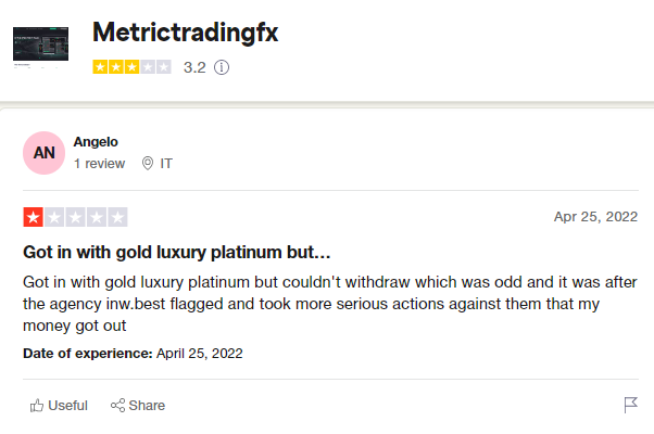 Metrictradingfx是一家評級不佳的經紀公司。人們在包括 BrokersView 在內的多個評論網站上抱怨該公司糟糕的行為準則。據該公司現有和以前的客戶稱,除了阻止訪問他們的交易賬戶外,經紀商從不處理提款請求。