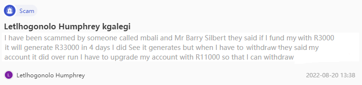 此外,經紀商還為各種交易賬戶做廣告。但是,一旦您在該公司註冊,它會將您重定向到“帳戶升級”菜單,您可以在其中看到一組全新的帳戶等級。假經紀人經常玩這樣的伎倆來迷惑客戶。