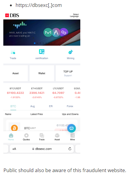 該網站聲稱是星展銀行的交易網站,但星展銀行(香港)已確認與該欺詐網站沒有任何關係。