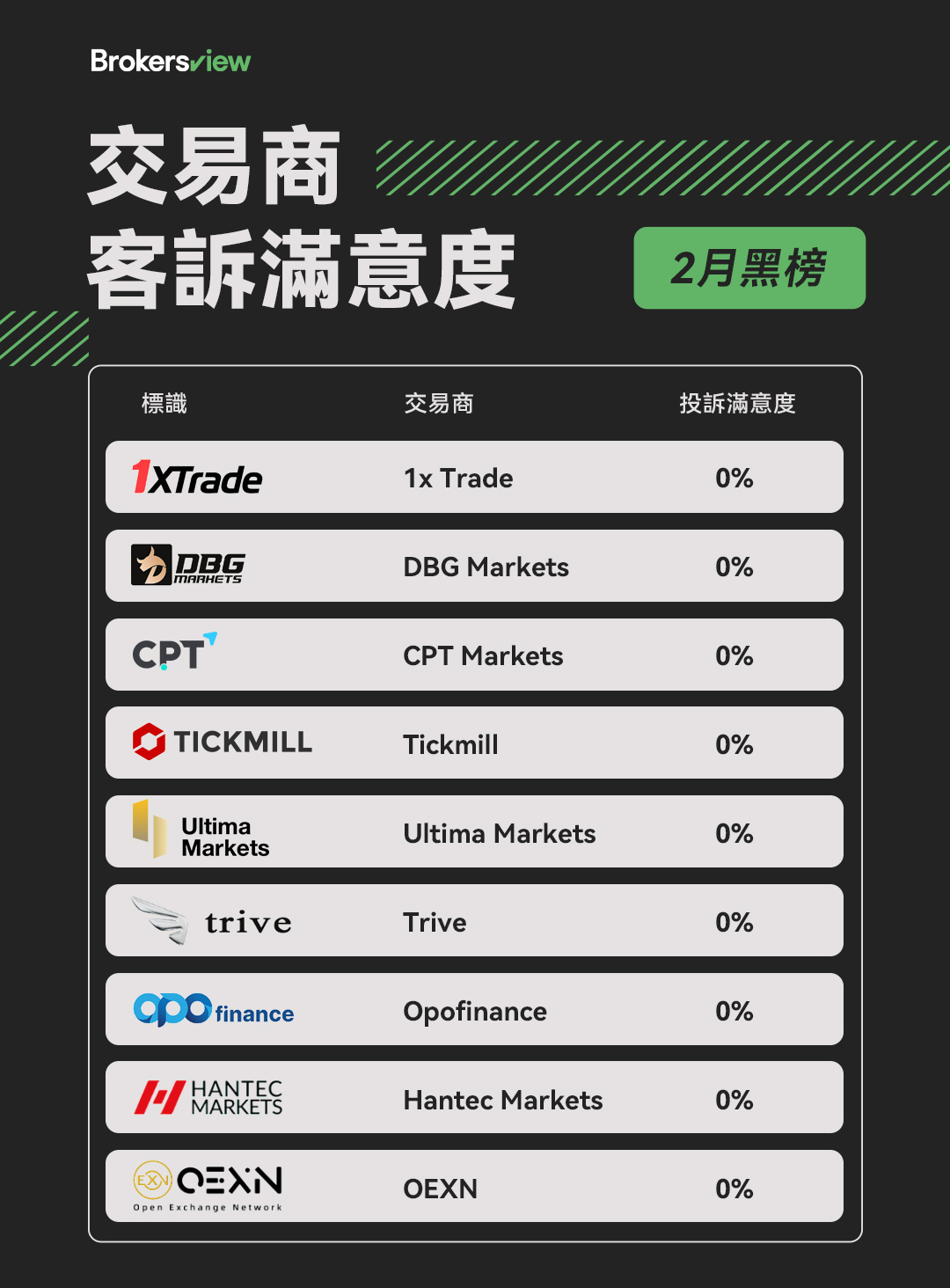 大多數投資者,尤其是新手,在選擇交易平台時往往會忽略經紀商的服務態度。然而,經紀商對待客戶的方式會對整體交易體驗產生顯著影響。因此,為了幫助投資者做出明智的選擇,BrokersView每月更新經紀商名單,並根據其投訴處理滿意度進行排名。我們的目標是提供有用的參考信息,幫助投資者了解經紀商是否重視客戶意見以及其整體客戶服務水平。