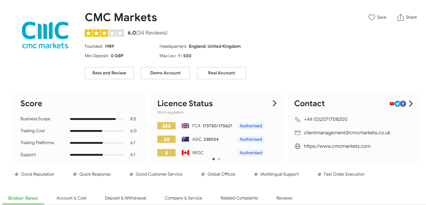CMC Markets是一家受多重監管的實體,在多家金融監管機構的監督下運作。您可以透過BrokersView了解更多關於特定監管機構的資訊。