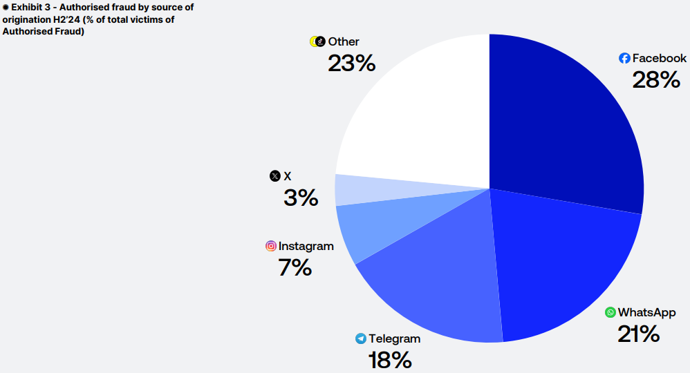 全球金融科技公司Revolut發布了第三份《消費者安全與金融犯罪報告》,揭示了犯罪分子利用加密資訊平台瞄準受害者的日益增長的趨勢。報告顯示,2024年下半年,源自WhatsApp和Telegram的詐騙比例大幅上升。