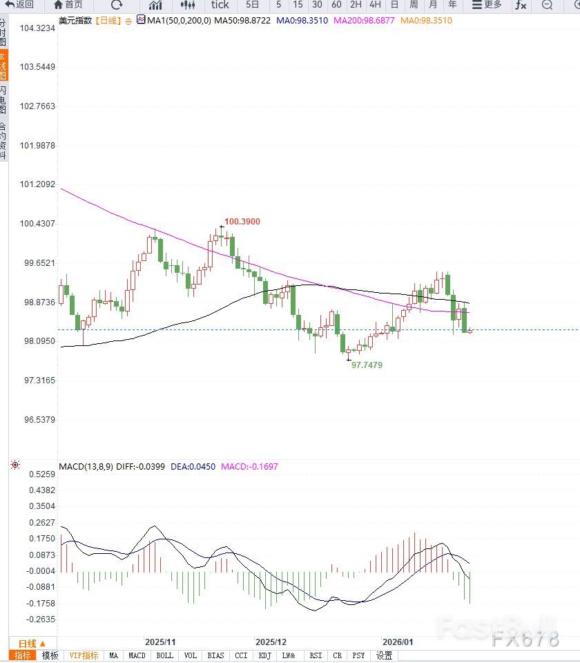 • 下方支撐:若指數跌破98.00整數關卡,可能會進一步回踩97.70區域。