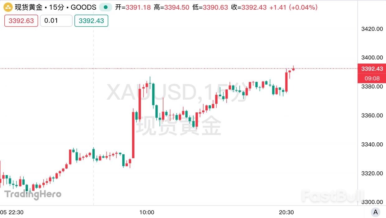 隨著全球最大的黃金買家從假期中回歸併提振了需求,黃金價格週二高開高走。截至發稿,現貨黃金已突破3,390美元/盎司,並朝著3,400美元/盎司邁進。紐約期金站上3,400美元/盎司。