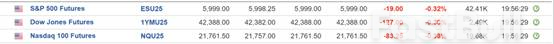 美國三大股指期貨低開,截至發稿,標普500指數期貨跌0.32%,以科技股為主的那斯達克指數期貨跌0.38%,道瓊工業指數期貨0.3%。
