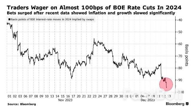 最新的定價變化使市場對英國央行的預期更接近聯準會,交易員目前預計聯準會明年將降息至少100個基點。聯準會將於北京時間週四凌晨公佈今年最後一次政策決定,英國央行將於週四晚間公佈。