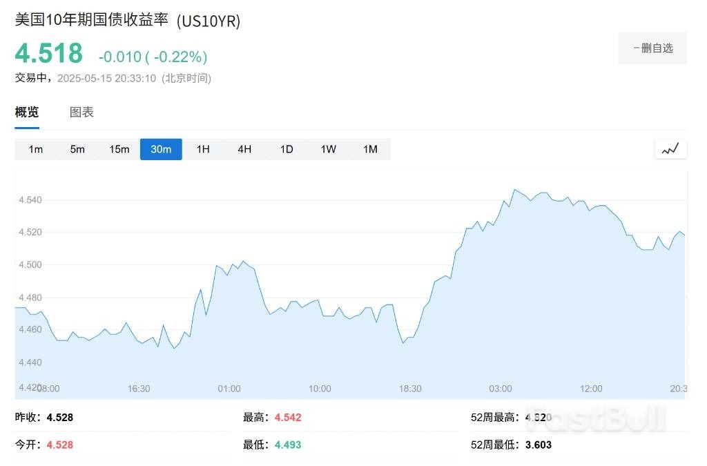 美國10年期公債殖利率短線走低,現報4.513%。現貨黃金短線波動不大,現貨3182.88美元/盎司。