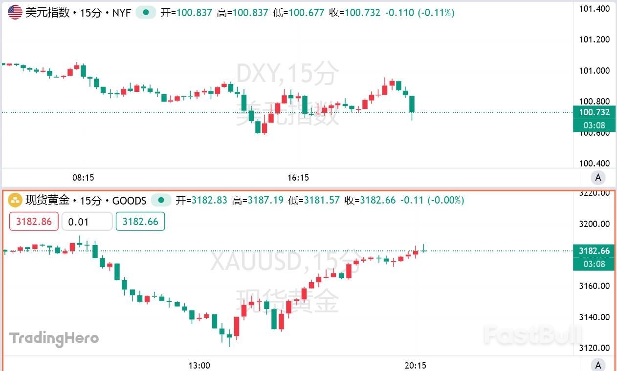 數據公佈後,美元指數短線小幅走低,現報100.79。美股期貨短線小幅拉升,那斯達克100指數期貨跌幅收窄至0.5%。