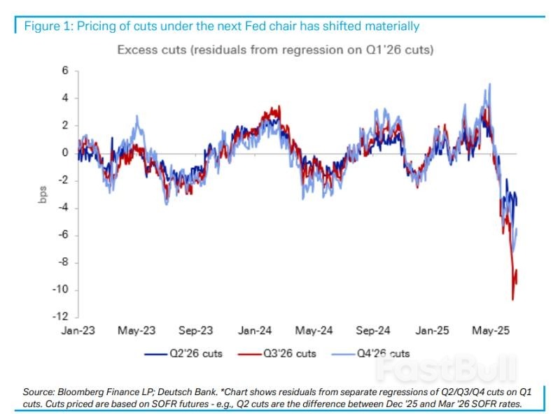 德意志銀行稱,透過統計模型分析發現「新主席溢價」現象,市場正為聯準會新主席任期內異常寬鬆政策定價,尤其是2026年第三季——正值新主席上任期間。