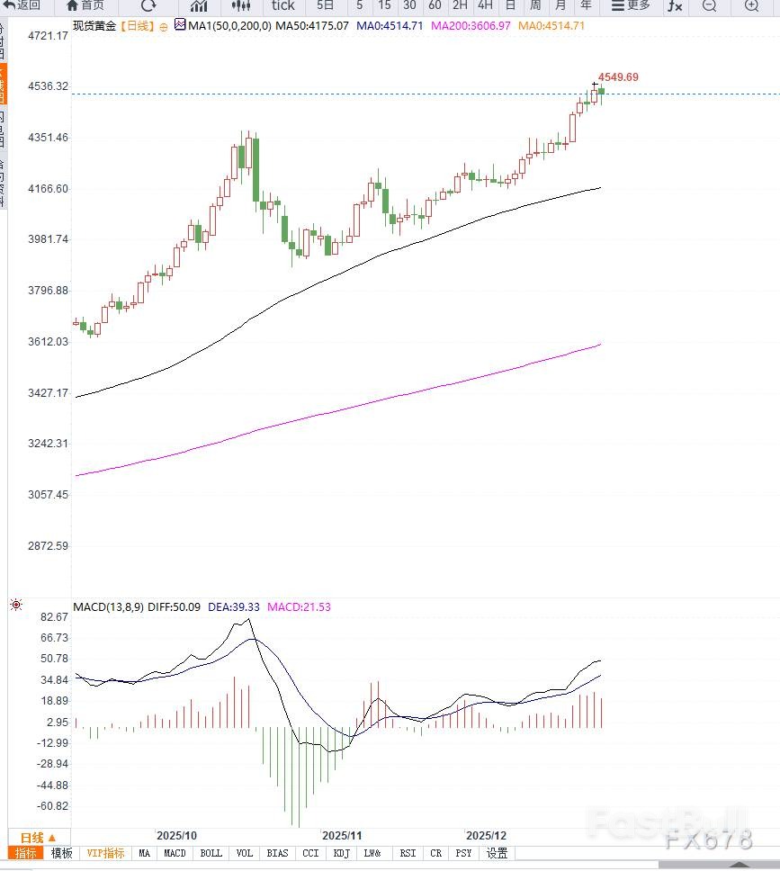 • 上方阻力:目前最直接的阻力位在4550美元。若能有效放量突破,金價可望進一步挑戰4,600美元整數關卡。