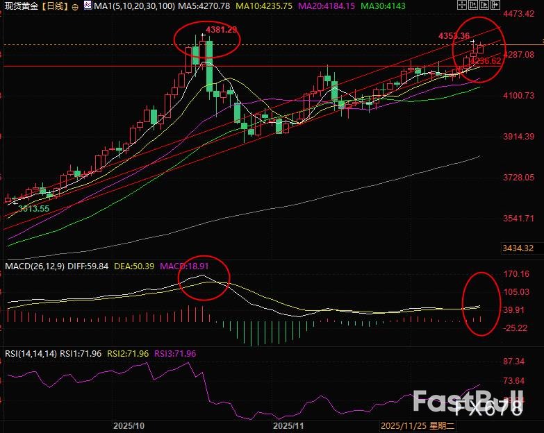 然而,風險也同樣存在。如果金價創出新高,MACD指標將出現頂背離,這為本輪上漲的可持續性打上了問號。