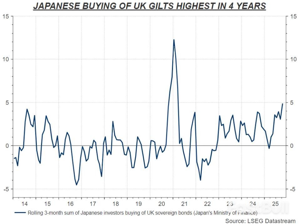值得注意的是,日本投資人早在英國推出緊縮預算、市場加大對英央行降息押注前就已經開始行動。同時,日本國內的政治動盪也促使投資人將資金撤離本國債券市場,進一步推動了資本外流。