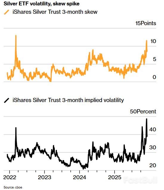先前,追蹤白銀的最大ETF——iShares Silver Trust的隱含選擇權波動率升至2021年初以來的最高水準。當時白銀曾短暫吸引了迷因股交易員的注意。過去一周,約有10億美元資金流入該ETF,超過了流入最大黃金基金的規模,為現貨價格提供了進一步支撐。