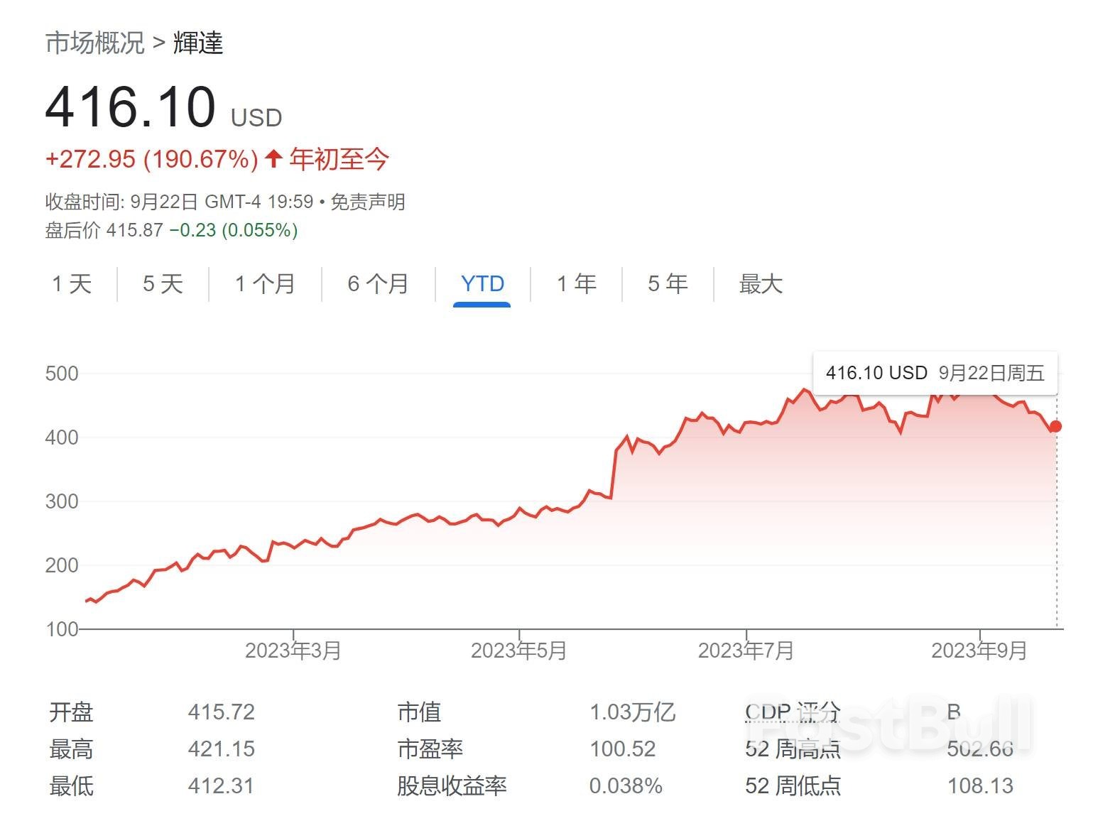 今年迄今,AI晶片巨頭英偉達股價已大漲逾190%,至416.10美元,但該智庫表示,該股目前被嚴重高估,隨時可能崩盤。