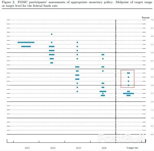 上週三,聯準會宣布“按兵不動”,將聯邦基金利率目標區間繼續維持在5.25%到5.50%之間。不過在「點陣圖」中,大多數央行官員認為今年還有一次25個基點的升息,並且對明年降息幅度的預測僅約50個基點。