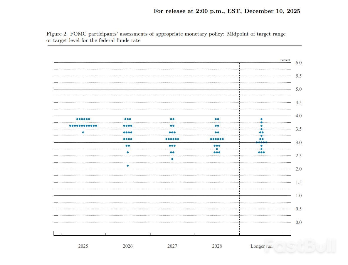 點陣圖的中位數預測顯示,聯準會將在2026年和2027年各降息一次,到2028年則維持利率不變。