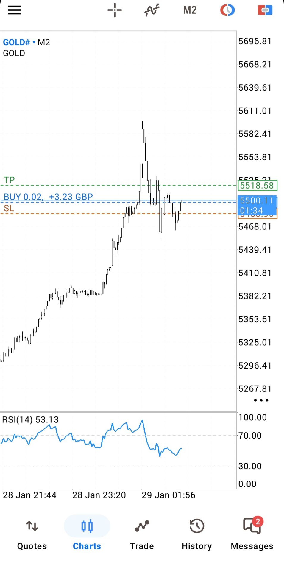 Giá vàng giao ngay đã giảm nhanh chóng sau khi tăng vọt lên gần 5.600 đô la, và hiện đang giao dịch ở mức 5.530 đô la mỗi ounce, với mức tăng trong ngày thu hẹp xuống còn 2%.