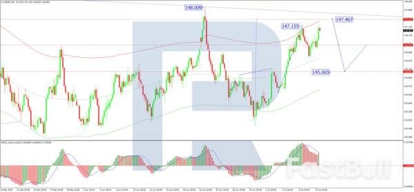 Một đợt củng cố gần 146,41 đã dẫn đến một đợt bứt phá đi lên, hoàn thành cấu trúc sóng tại 147,17. Hiện tại, một đợt điều chỉnh giảm xuống 145,65 đang được xem xét, được xác nhận bởi chỉ báo dao động Stochastic, với đường tín hiệu nằm ở mức 80 và hướng xuống mạnh.