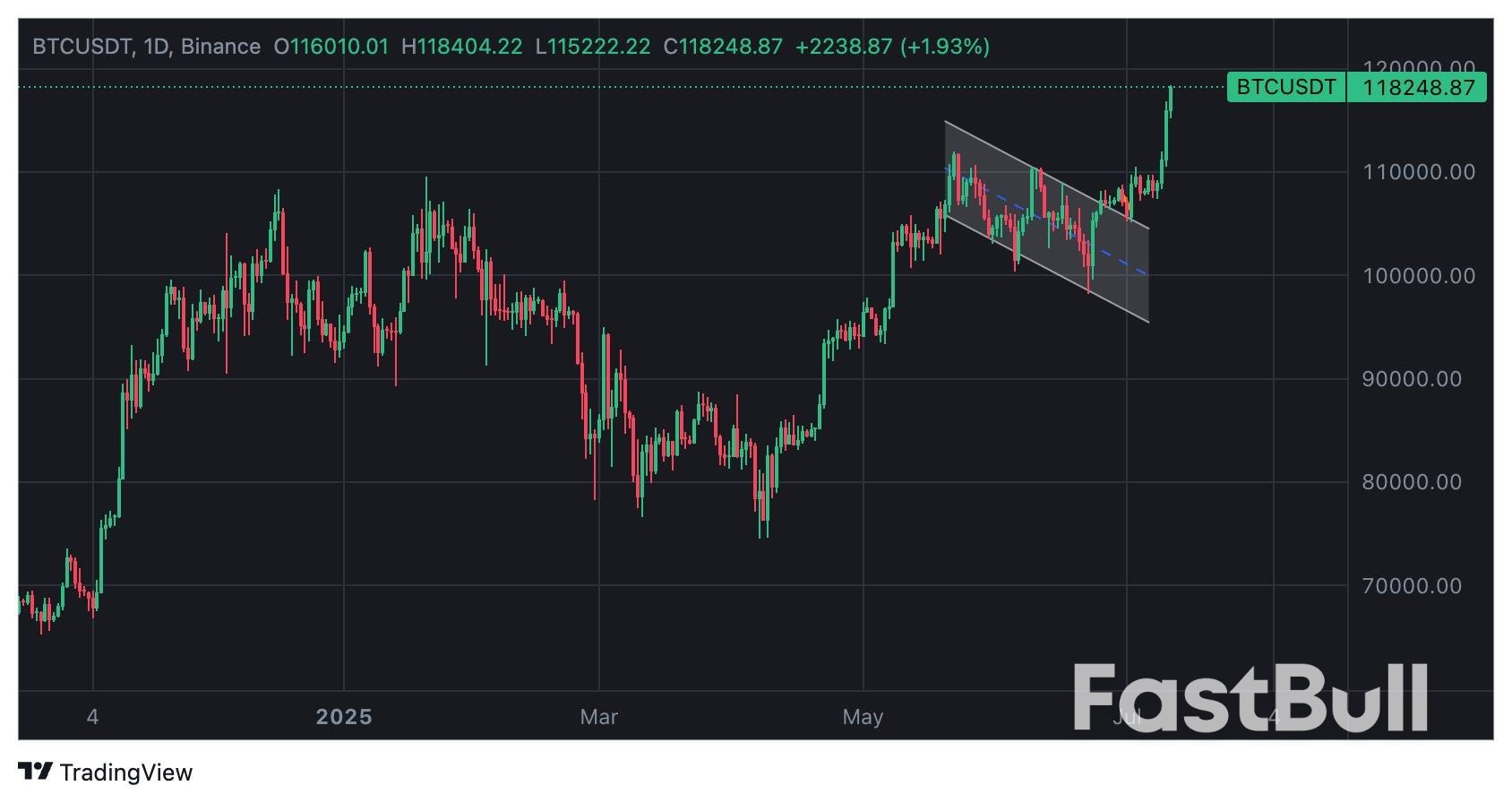 The July 11 breakout came without any discernible pullback—the price shot from $116,000 straight through $118,000, leaving those waiting for it in the dust.