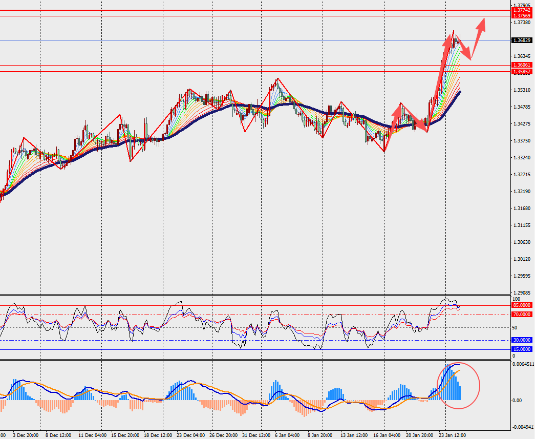 第一阻力位:1.3740 第一支撑位:1.3630