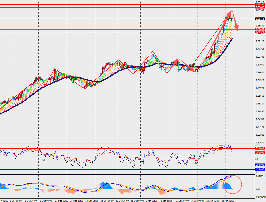 第一阻力位:0.6960 第一支撑位:0.6870
