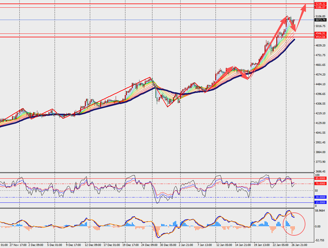 第一阻力位:5090.00 第一支撑位:5055.00